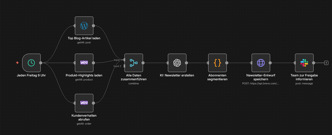 Typische Tools: n8n, WooCommerce, Mailchimp/Brevo